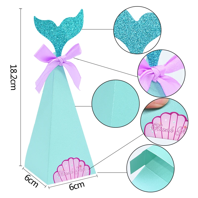 Addition Information of Mermaid Candy Box DIY Paper Box Bags Mermaid Birthday Decorations Little Mermaid Gift Box For Kids Birthday Party Favor Supplies