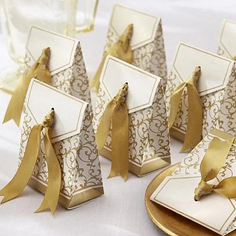 Addition Information of 100Pieces 6.7x3.5x8.5cm Silver Gold Candy Box Bridal Gift Ribbon Wedding Favors Sugar Case Wedding Party Supplies