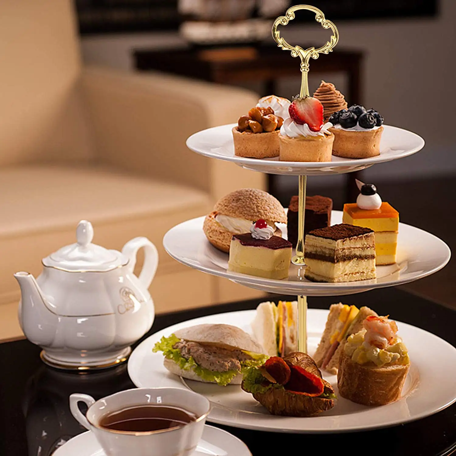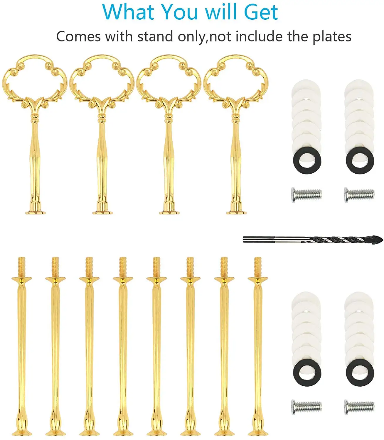 Addition Information of METABLE 4 Sets 2 or 3 Tier Dessert Stand Gold Flower Design Cupcake Stand Handle for Afternoon Tea Fruit Wedding Party Buffet