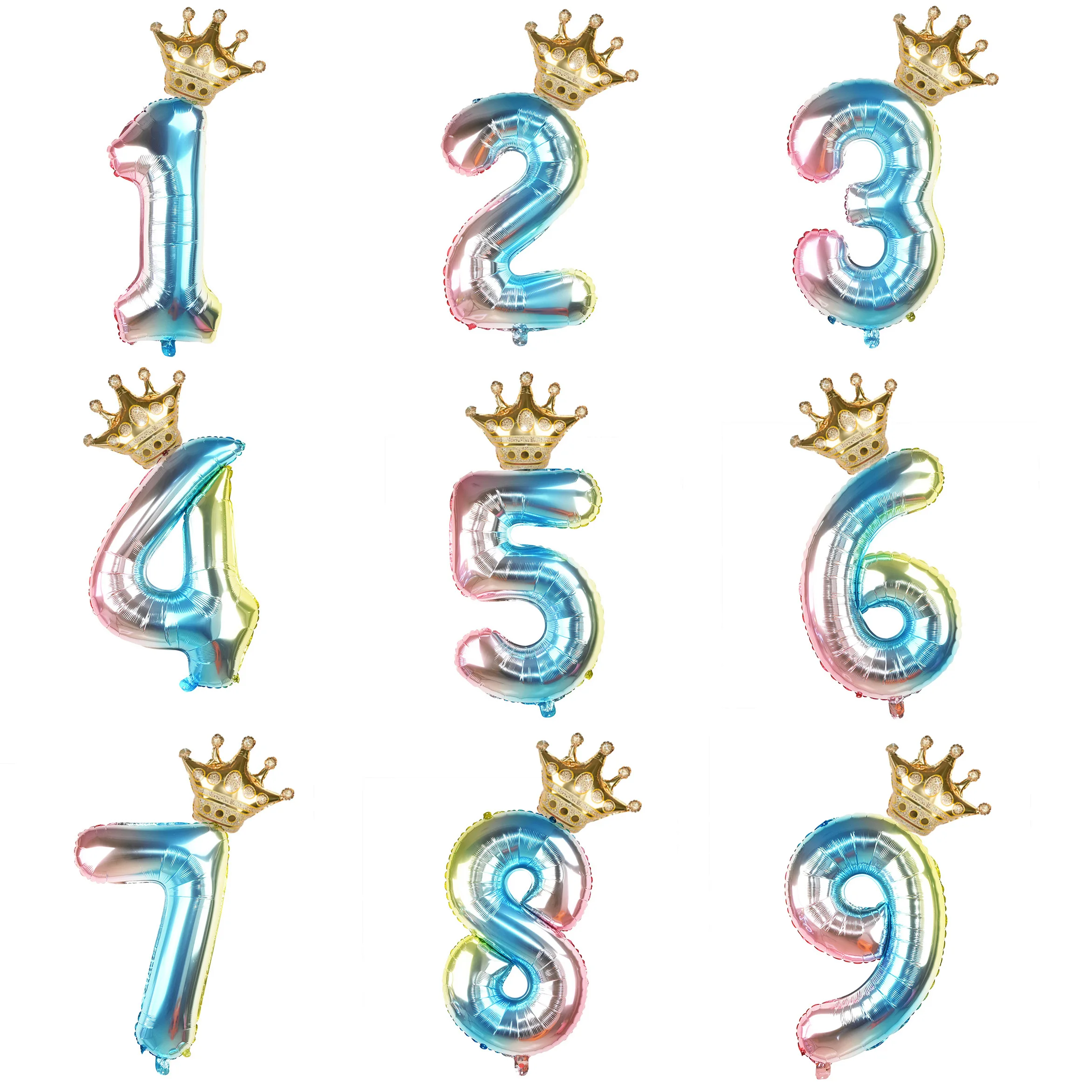 Limited Price 1pc Gradient Aluminium Foil Balloons Number 0-9 Globo Birthday Party Anniversary Party Decor Kids figure Crown Air Ball Supplies with FREE Shipping Worldwide!