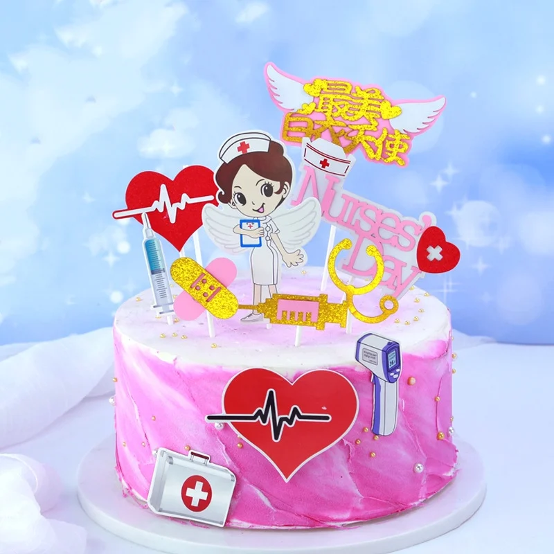 Addition Information of 1 Set Cute Nurse Character Cake Toppers Nurse day Cake Dessert Adorn card Flags Decor family Cake Baking DIY Party Supplies