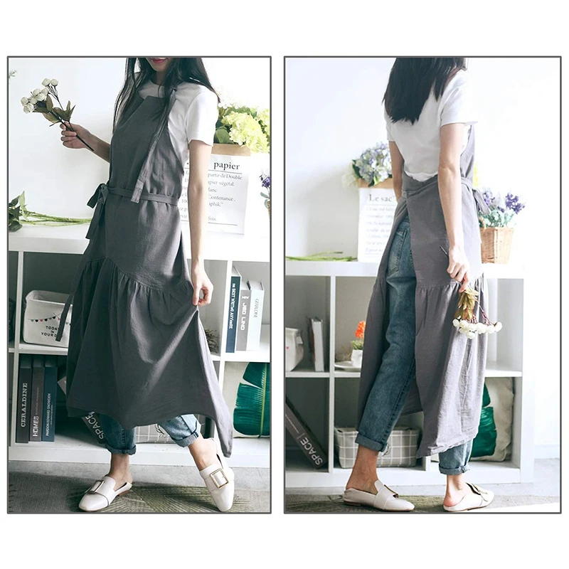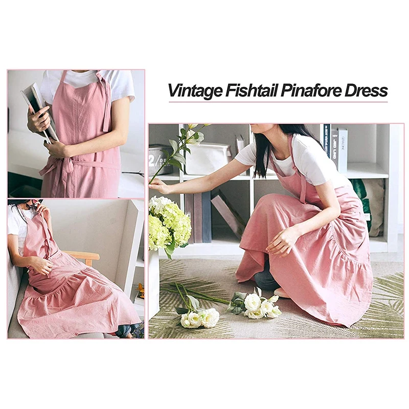 Addition Information of Retro Long Vintage Apron Adjustable Fishtail Style Gardening Work Cotton/Linen Blend Fashion Tie Apron Women'S Dress Girl (Gray,